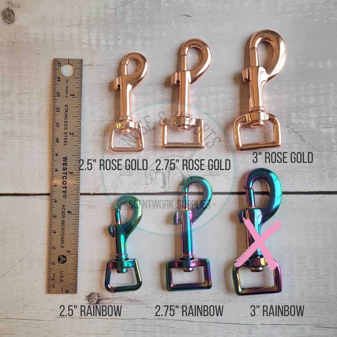 White with rainbow hardware, one foot loop with a ring