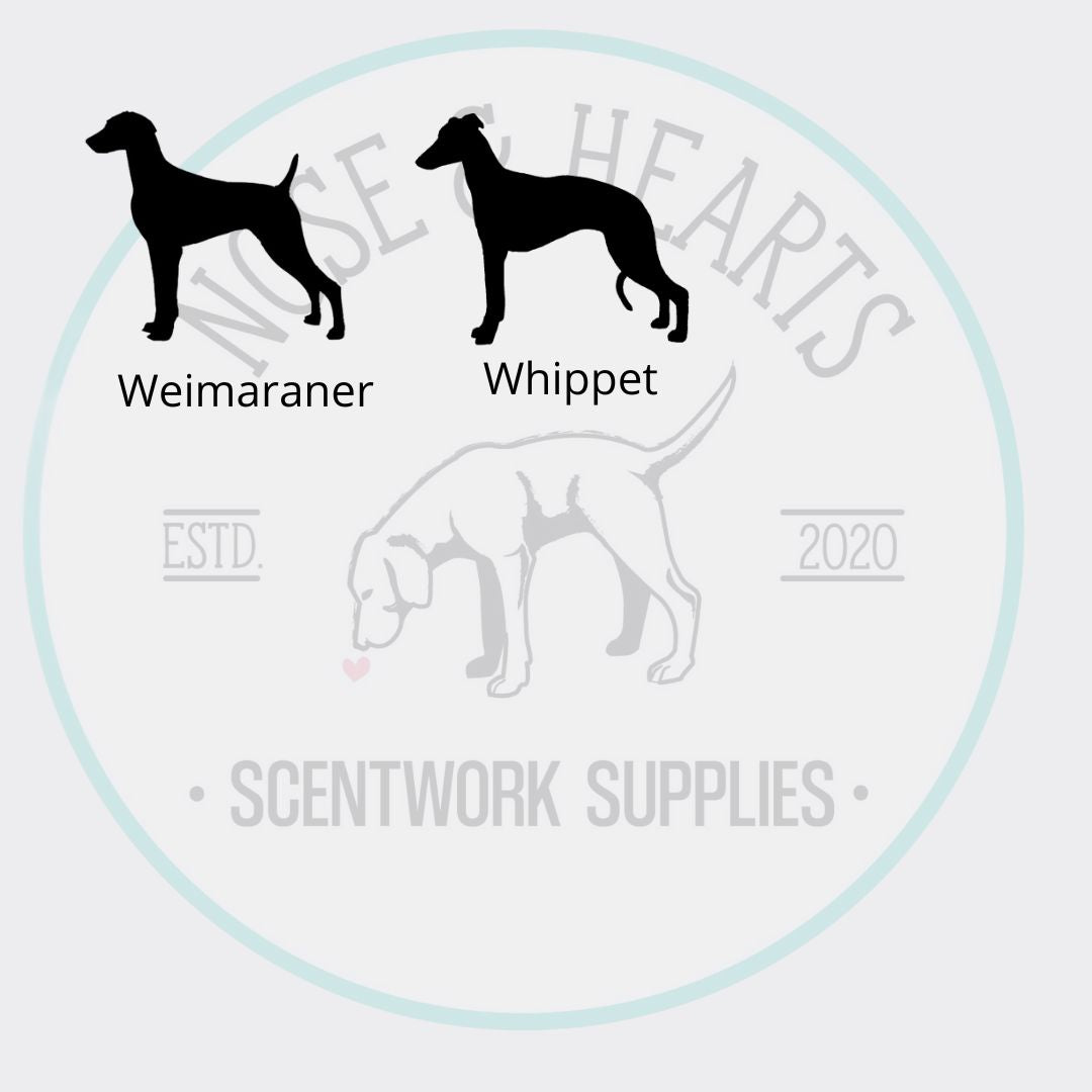 Black with Shiny Purple, Whippet with silver clasps for attaching to thin wired doors