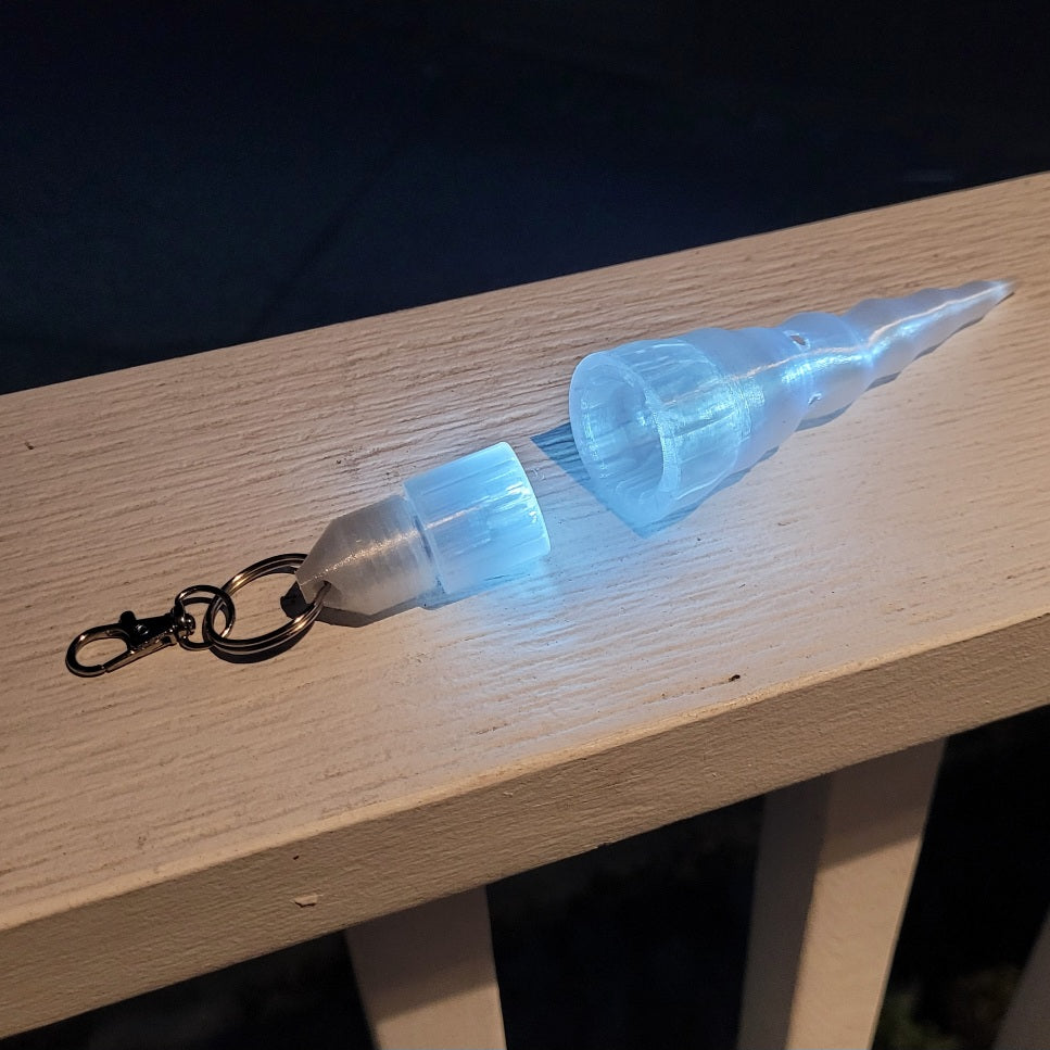 - The Icicle Aerial Sniff line & Vessel has a small base that is secured permanently the line. The main part of the body screws off so you can load your odour. The mini light is located in the small base and can be turned on and off by removing the light, twisting it to turn it on, and then placing it back in the small base to light up the icicle.