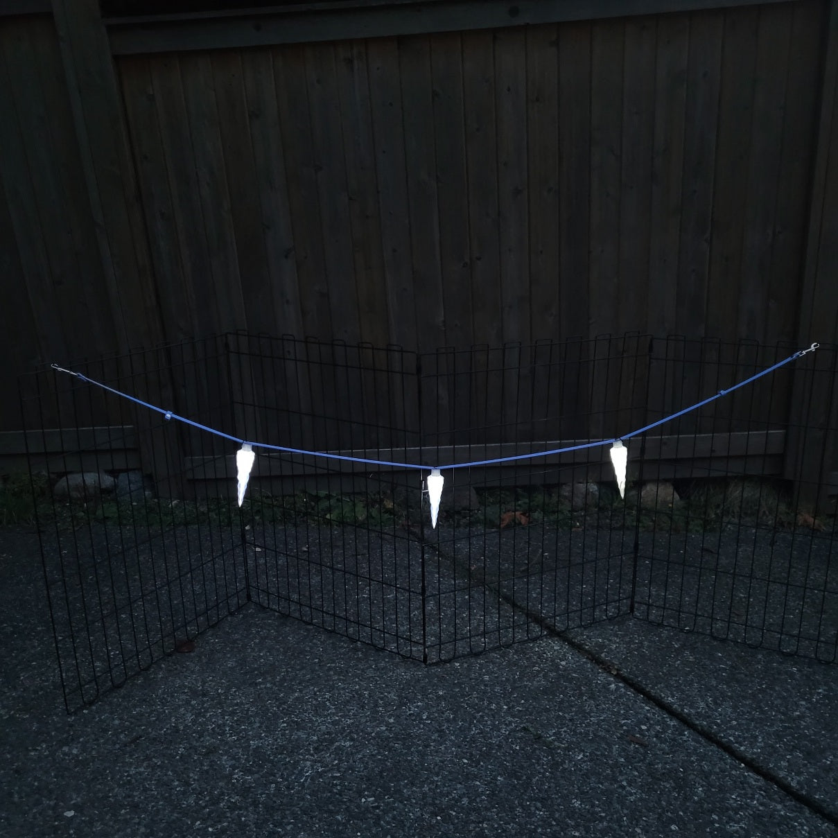 This is the Icicle Aerial Sniff line, which comes with 3 vessels and 3 lights. It is shown here lit up at night on a cedar bush.